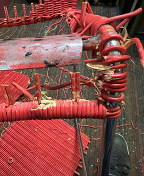 Oben: Armlehnen neu geflochten